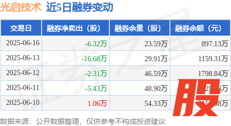 本站消息开源策略,6月16日,光启技术(002625)融资买入1.44亿元,融资偿还1.72亿元,融资净卖出2789.1万元,融资余额60.34亿元。