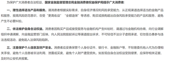 文件指出,代理维权方从中收取高额代理费用,并常伴有骗取金融消费者个人信息、诈骗金融消费者资金等其他违法犯罪行为,消费者需警惕并自觉远离违法违规代理维权陷阱。